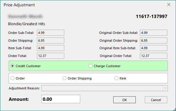Note: From the Price Adjustment window, you can choose to charge for or refund shipping.