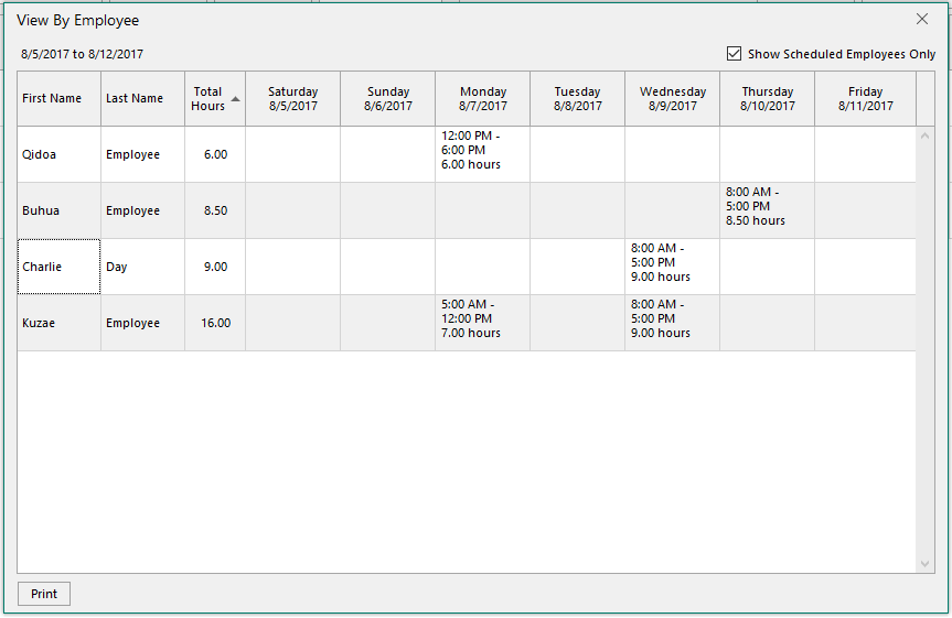 - Use the checkbox at the top-right to toggle between all store employees and only scheduled employees.