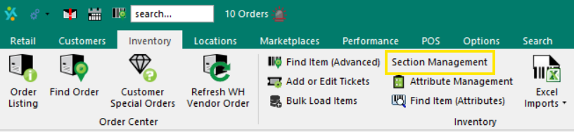 Go to the Inventory Tab > Section Management.