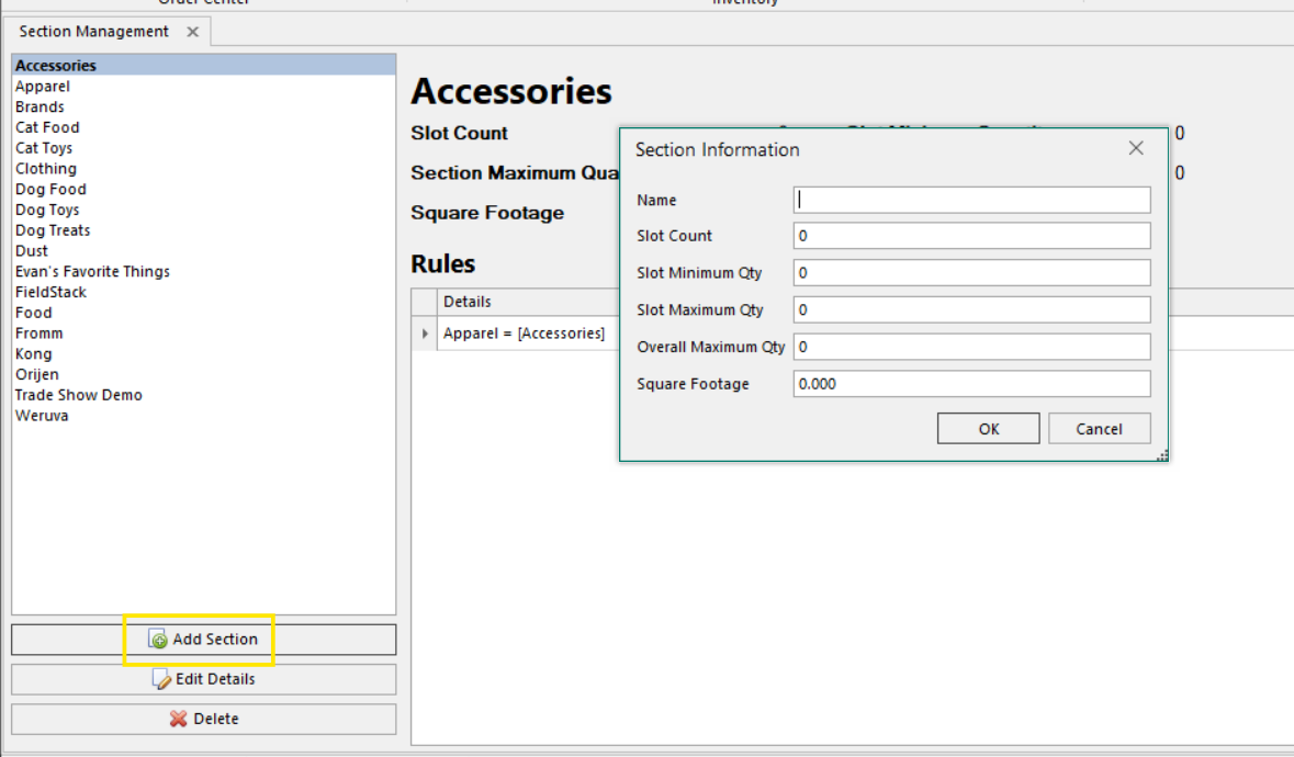 1. Click Add Section in the bottom left of the Section Management window