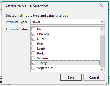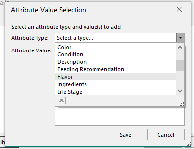 4. Select an Attribute Type (e.g., Flavor, Size, Color) and choose the values you want to include