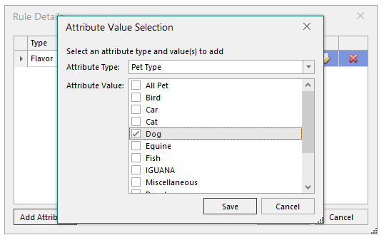 6. To narrow the section further, click Add Attribute again and add another attribute type. Items must match all attribute types to appear in the section