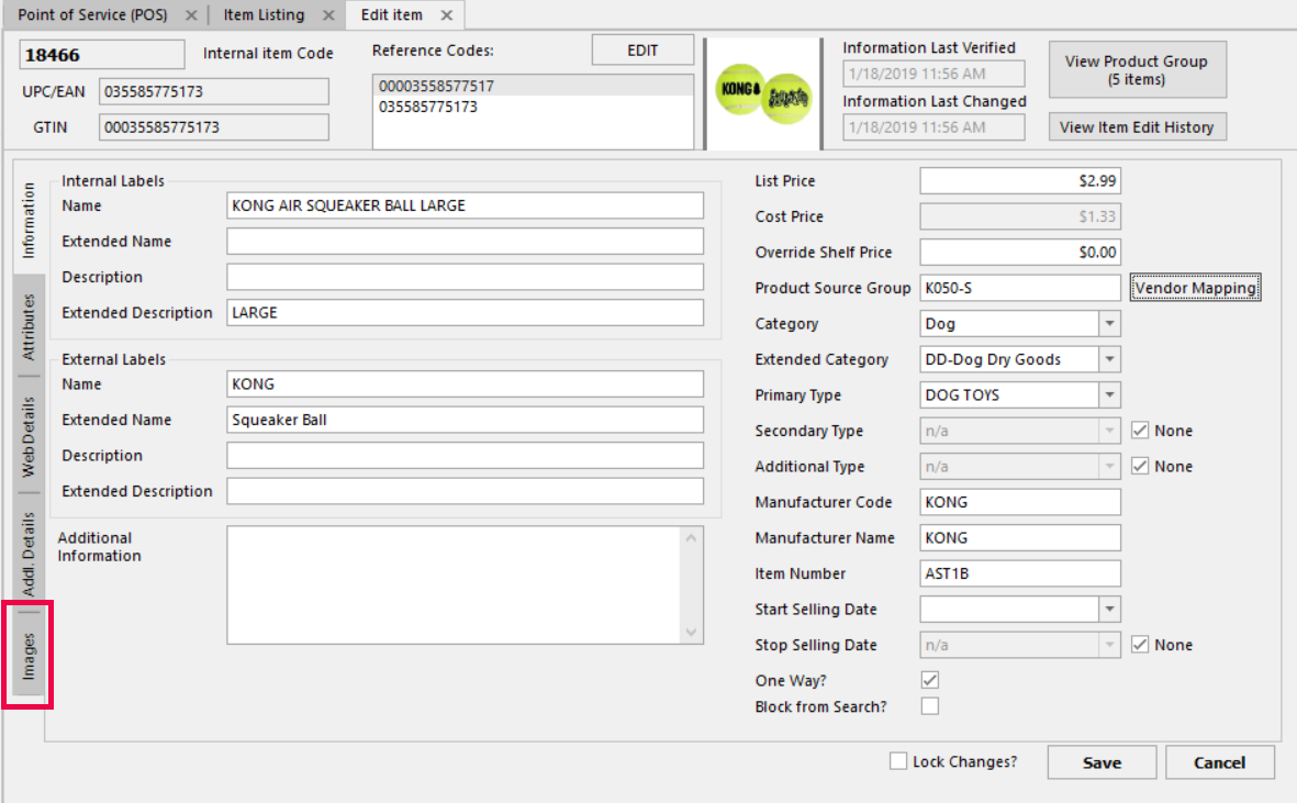 Note: Saving closes the Edit Item screen. To add another image to the same item, double-click the item name again and repeat the process.