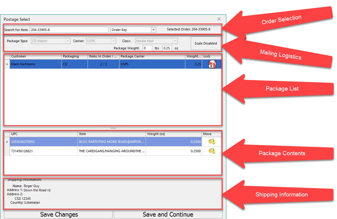- Mailing Logistics: This area contains the suggested packaging, the carrier, class, and an estimated package weight.