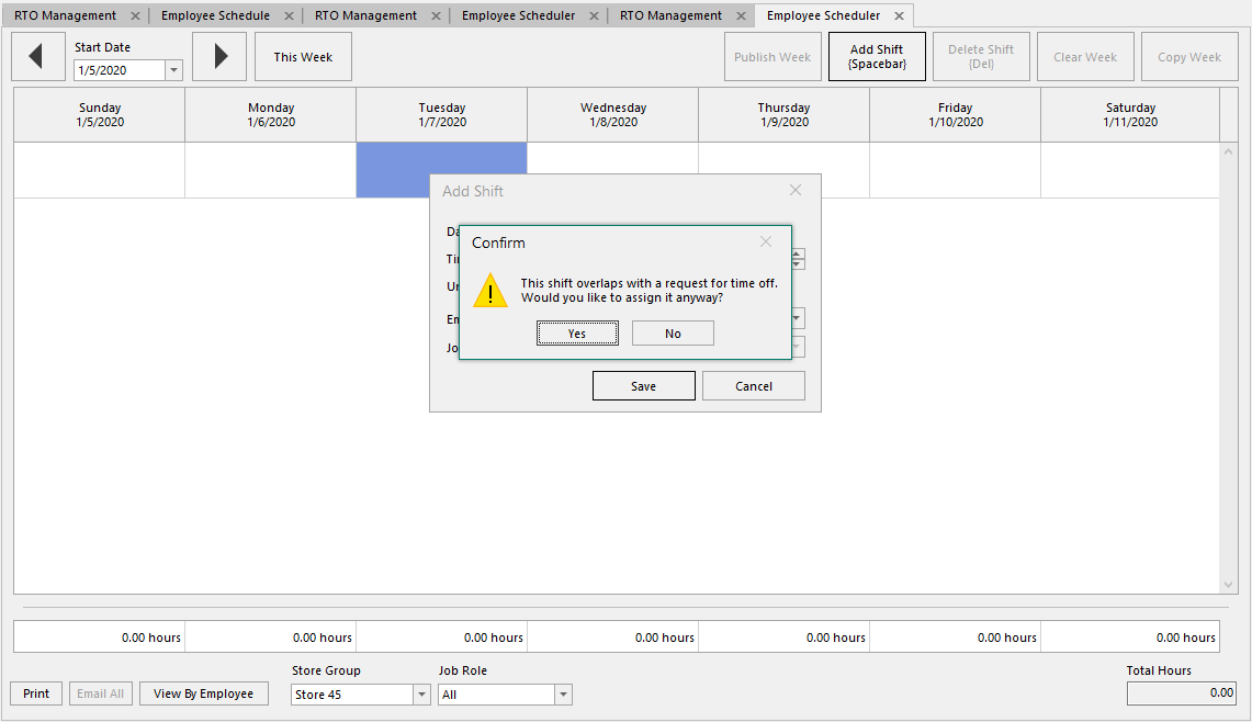 NOTE: If you already have the employee scheduler open, you must close out of it and open a new one in order for this prompt to work.