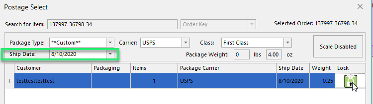 - Specify shipment date of package. This date will automatically roll forward if a SCAN sheet has been produced. This will give the ability to put the actual anticipated shipment date on the shipment information and shipping label.