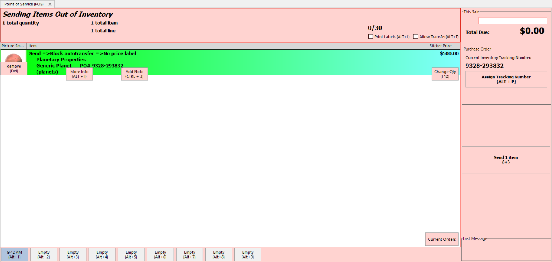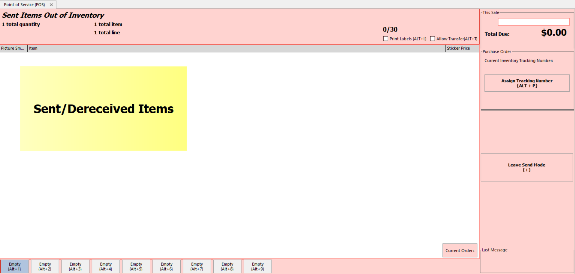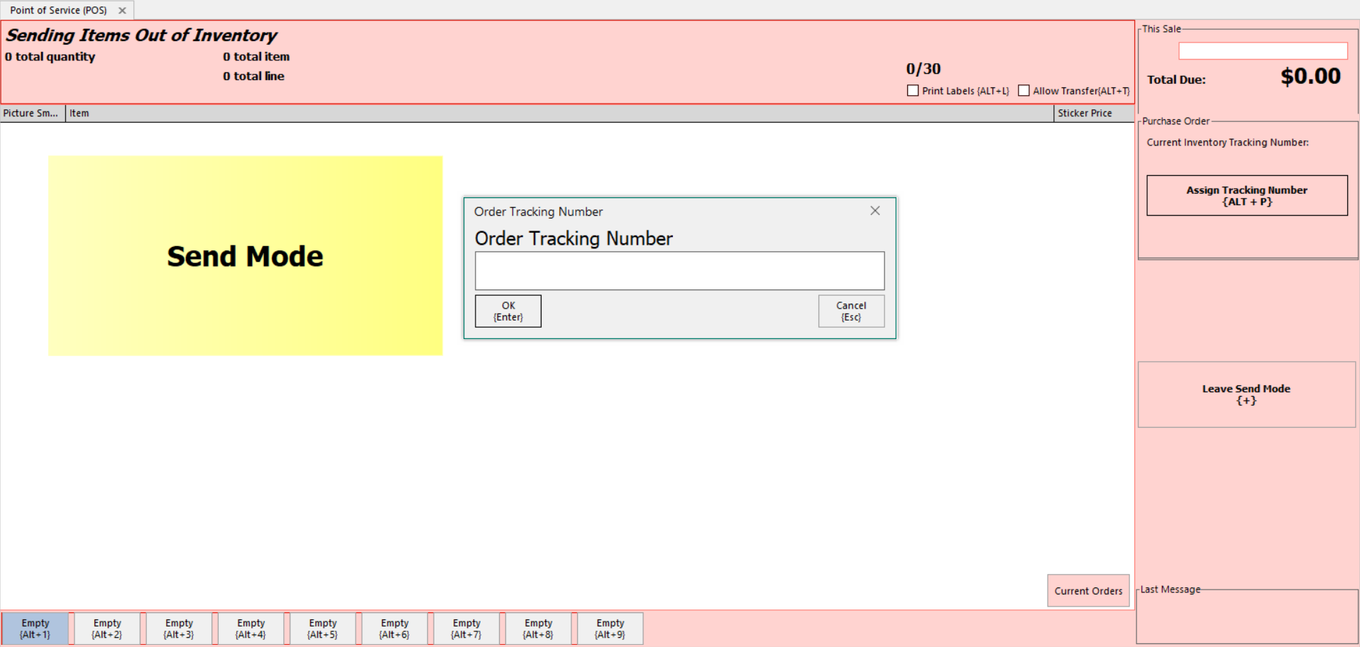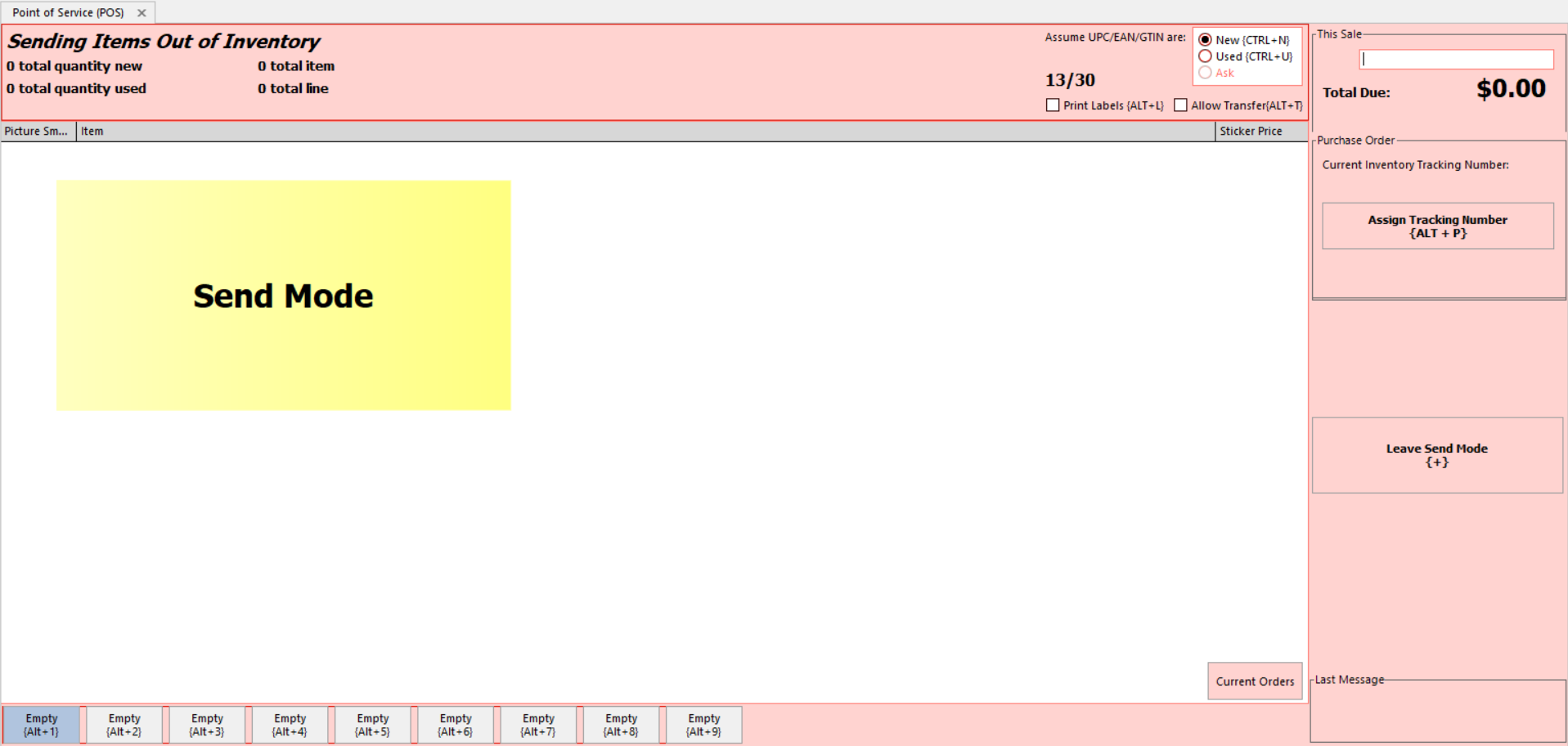 1. Open Send Mode on the POS by clicking the red Enter Send Mode button, or the CTRL+S keyboard shortcut.