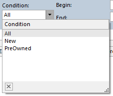Condition: You can use this dropdown to narrow the search to only new or pre-owned (used) items. ![]()