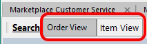 You can toggle between the search results’ viewing configurations using the “Order View” and “Item View” buttons to the right of the bolded “Search” button: