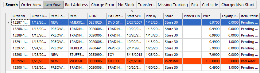 Item View: this view, also referred to as the “By Item” view, shows a single list of all of the items in all of the orders that match your search criteria: