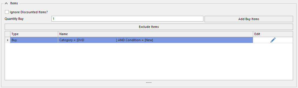 Add Buy items that the coupon will apply to. For the discount to apply if the item is a new movie, add the items with the corresponding attributes.