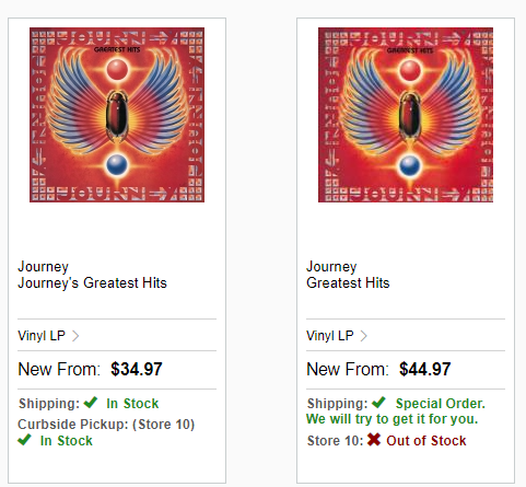 - In Store Pickup item availability on the product page, and product tiles in search results.