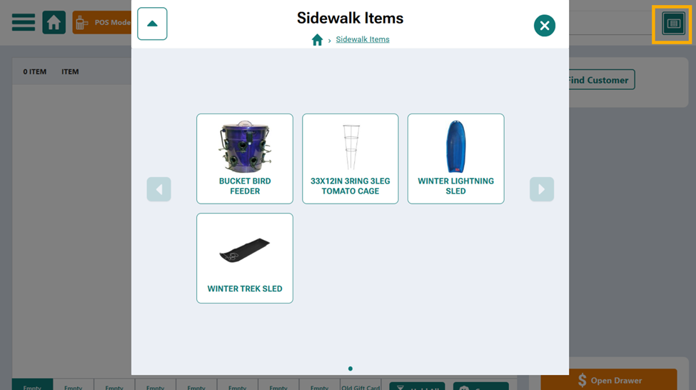 The Quick Access Menu makes product selection faster and easier than ever. This on-screen visual menu can be used to display items, and categories of items, that may not have barcodes or may not be easily scannable. Especially useful for items that are hard to lift onto the counter, things that are displayed outside the store, weight-based items without packaging, or services and add-ons such as Grooming, Bag Fees, Service Charges, or Donation listings.
