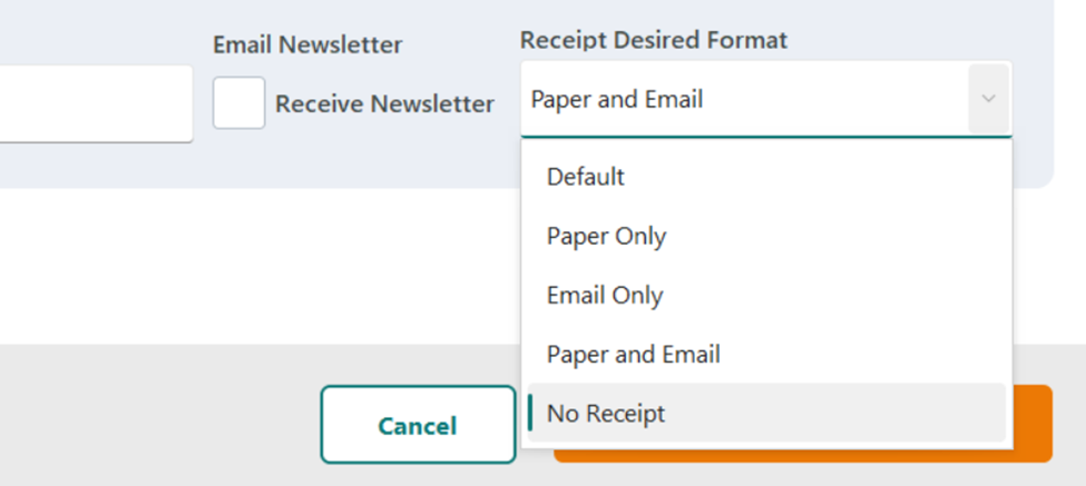 Customers who prefer not to receive receipts can now opt out entirely, helping reduce paper waste and streamline checkout. Manual receipt printing remains available when needed. This preference can be set within Edit Customer.