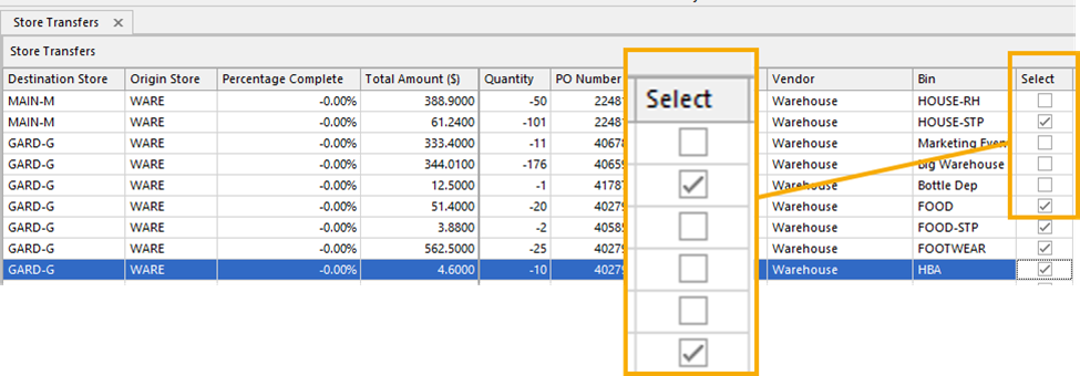 The Store Transfers tab now allows you to multi-select transfers to print, activate, or close them in bulk.
