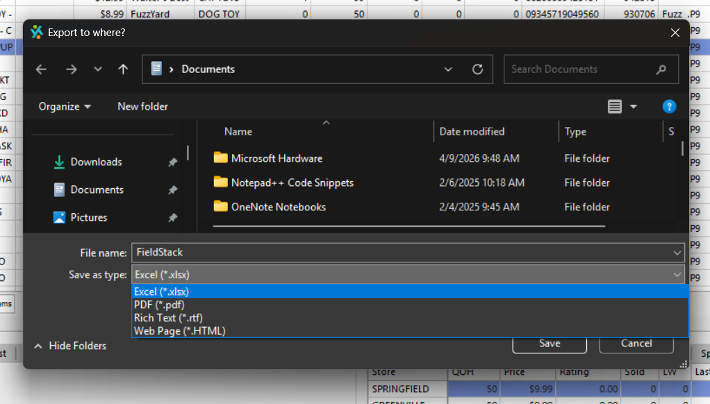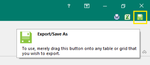 Dragging the Export/Save As icon will bring up a prompt for the export file Name, Type, and Location on your machine.