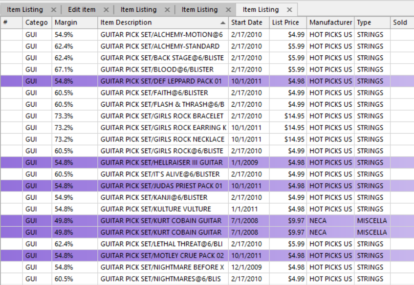 If an item is marked as NO INTERNET SALES, it will also show up as purple in item search results, like this: