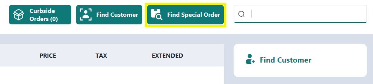 - When the customer has been added to the transaction screen, tap Find Special Order or [ALT + F8].