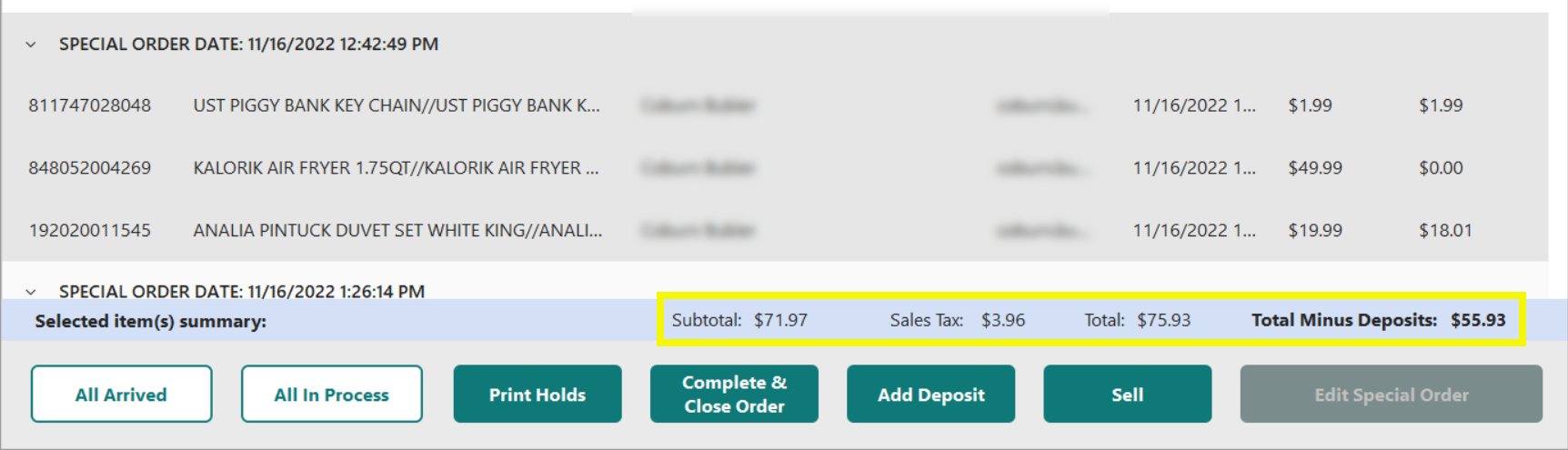 - Selling in this way will complete the Special Orders or Holds and remove them from the list.