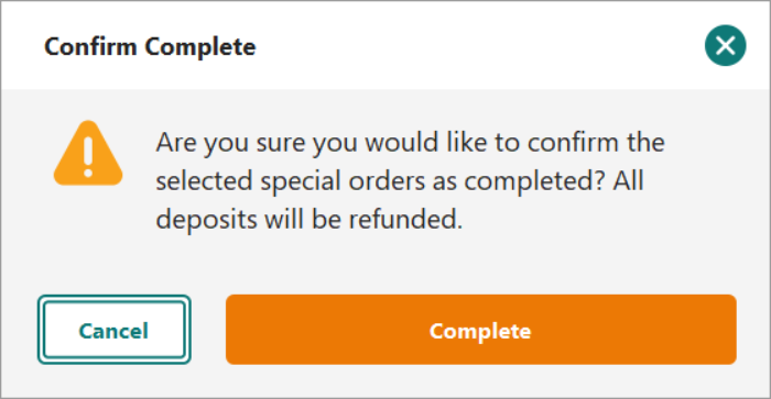 If you forgot to sell an item using the label or Hold Slip, or a customer did not pick up an item or no longer wants to wait for its arrival, you can Complete the order to remove it from the Special Order system.