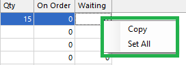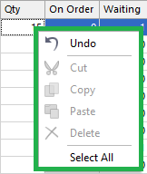 In many different tables and grids, right-clicking on a cell or heading will bring up a menu of additional options besides Copy. There are many different menus that offer different things. It is recommended that when viewing different screens for the first time you try right-clicking to view any options that may be useful.